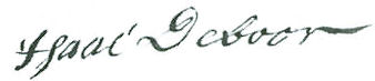 Isaac de Boor, * 06.11.1704 in Hanau, † ??.??.178? in Hamburg. Weinhändler in Hamburg. Sohn des Johann Peter de Boor (auch Deboor oder Debor), Hanauer Walkmüller und der Johanna Maria Gruber (T. d. Michael Gruber). | ||
